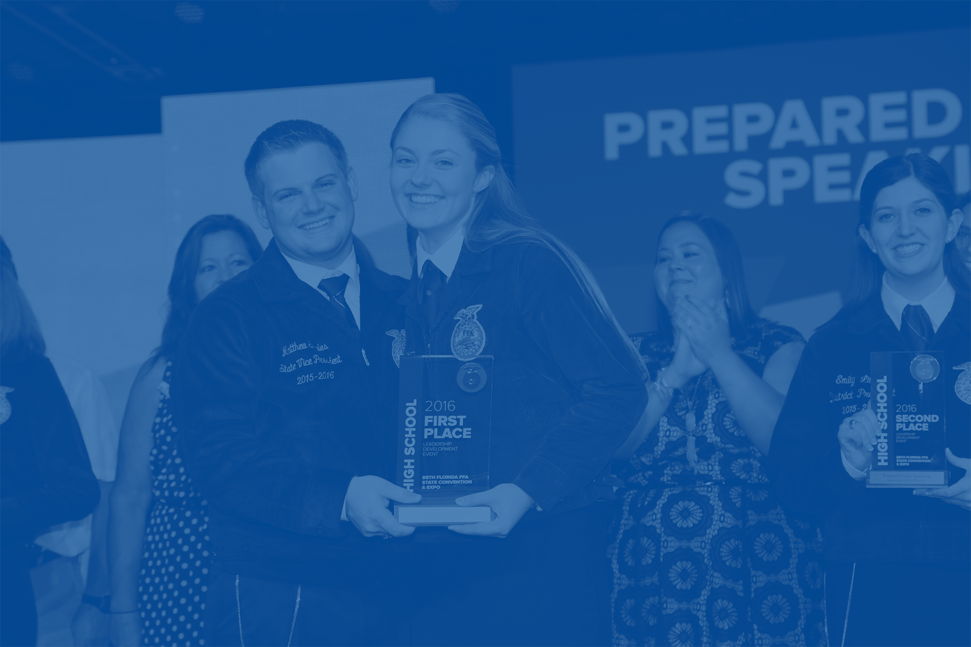 Finalists are recognized and the winner receives a plaque on stage at the State FFA Convention.